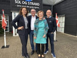 Bestyrelsen i Fonden Sol og Strand ved Margit og Kjeld: Sisse Fisker, Jens Stadum, Margit Andersen og Per Dam.